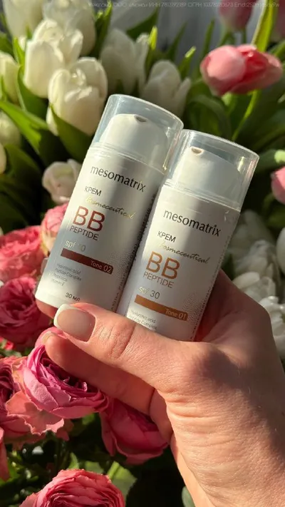 девочки, у нас пополнение в косметичке, и оно «пахнет»уходом! Новинка от бренда Mesomatrix — тональный ВВ крем для лица с SPF 30 с пептидами. Прошли те времена, когда я наносила тон, для спрятать пр