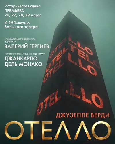 Большой театр отметит юбилейный 250-й сезон грандиозной премьерой оперы Джузеппе Верди «Отелло» Юбилейный 250-й сезон Большого театра ознаменуется масштабной премьерой оперы «Отелло» — непревзойдённо