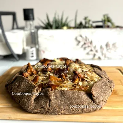 Постная галета с капустой и лисичками Тесто: • Миндальная мука - 130 г • Оливковое масло - 50 мл • Псиллиум - 30 г • Веганский протеин (Можно не добавлять) - 20 г • Уксус яблочный - 1 ст.л • Вода