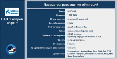 📝 Новое размещение ПАО "Газпром нефть" ‼️ Облигации будут доступны для приобретения неквалифицированным инвесторам при условии прохождения теста №8. Финансы: ▫️Капитализация: 2 488,7 млрд ₽ / 524,7