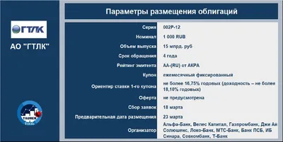📝 Новое размещение АО «ГТЛК» АО "Государственная транспортная лизинговая компания" (ГТЛК) поставляет в лизинг технику и оборудование для авиационных, транспортных компаний и предприятий других отрас