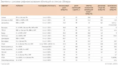 Эйлер назвал 16 эмитентов облигаций с повышенным риском рефинансирования Эти 16 эмитентов из списка в 115 компаний с рейтингом А- до ААА, которые они покрывают. Ведомости 📲 Мы в MAX