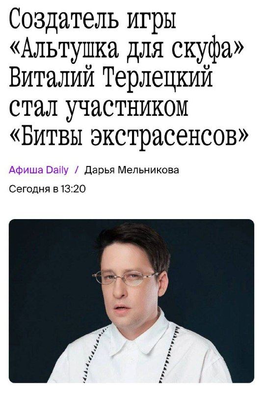 Автор игры «Альтушка для скуфа» Виталий Терлецкий внезапно стал экстрасенсом. Разработчик принял участие в 25 сезоне «Битвы экстрасенсов», который идёт по телику прямо сейчас. Терлецкий рассказал, чт