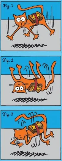 Парадокс кошки с маслом Основан на двух народных мудростях. Кошки всегда приземляются на лапы, а бутерброд всегда падает маслом вниз. Соответственно, если прикрепить бутерброд маслом вверх к падающ