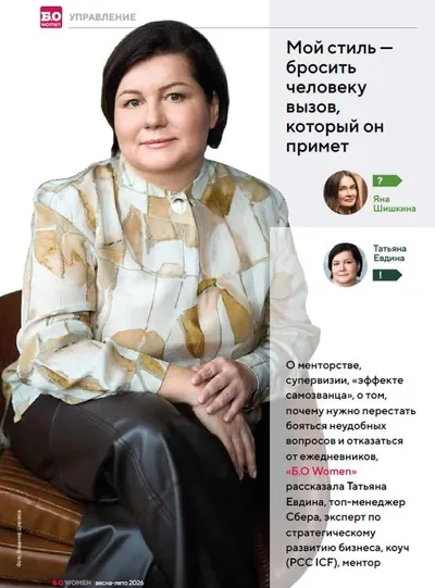 🎯 Мой стиль — бросить человеку вызов, который он примет Топ-менеджер Сбера, эксперт по стратегическому развитию бизнеса Татьяна Евдина — о менторстве, супервизии, «эффекте самозванца», а также о то