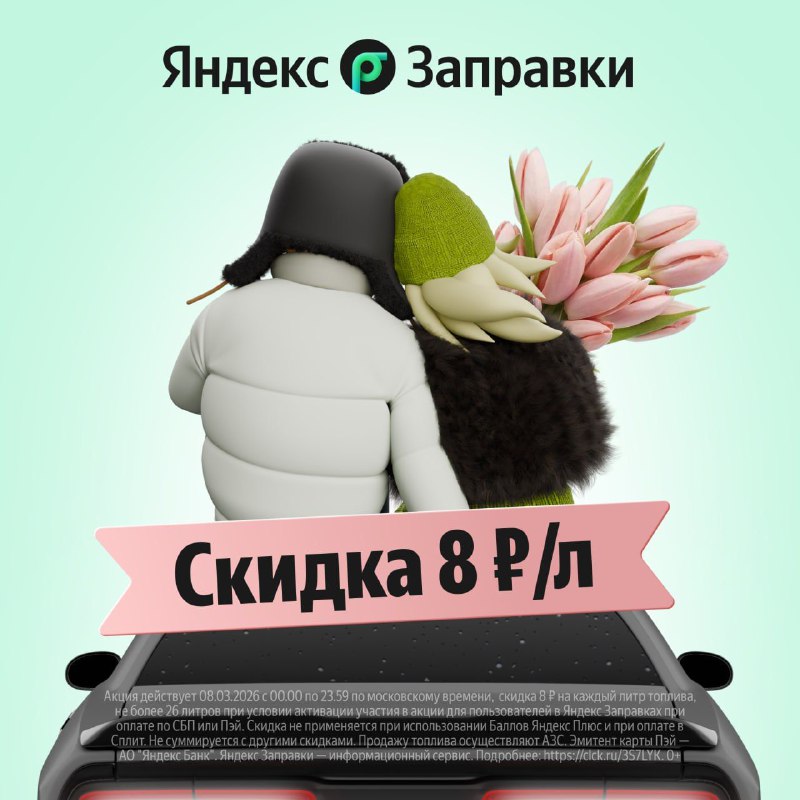 Итак! Впереди у нас женский день, и что мы можем предложить нашим женщинам?! На 8 марта план: дарим девушкам цветы💐и бензин ⛽️через приложение Яндекс Заправки 😉 Успейте воспользоваться скидкой 8 р