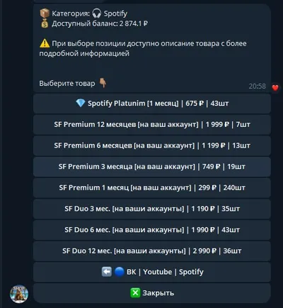 На фоне тотального блюра всех песен в Яндекс Музыке хочу напомнить, что Spotify Premium можно купить в Покупобаре мемной (это мой бот со скидками). Так двойная подписка на ЦЕЛЫЙ ГОД будет стоить всего