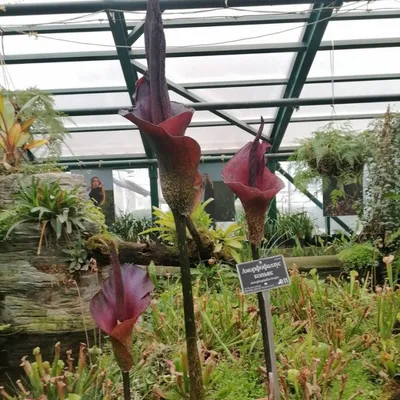 В ботаническом саду МГУ "Аптекарский огород" расцвел азиатский аморфофаллус коньяк с запахом гнилого мяса. Об этом сообщила пресс-служба сада. Цветок, известный как "трупный цветок" или "язык дьявола