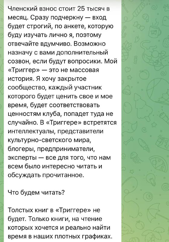 > Членский взнос в книжном клубе Татьяны Столяр — 25000 рублей. > длинных книг не будет. Звучит как идеальный клуб для встречи инстаграмщиц с миллиардерами