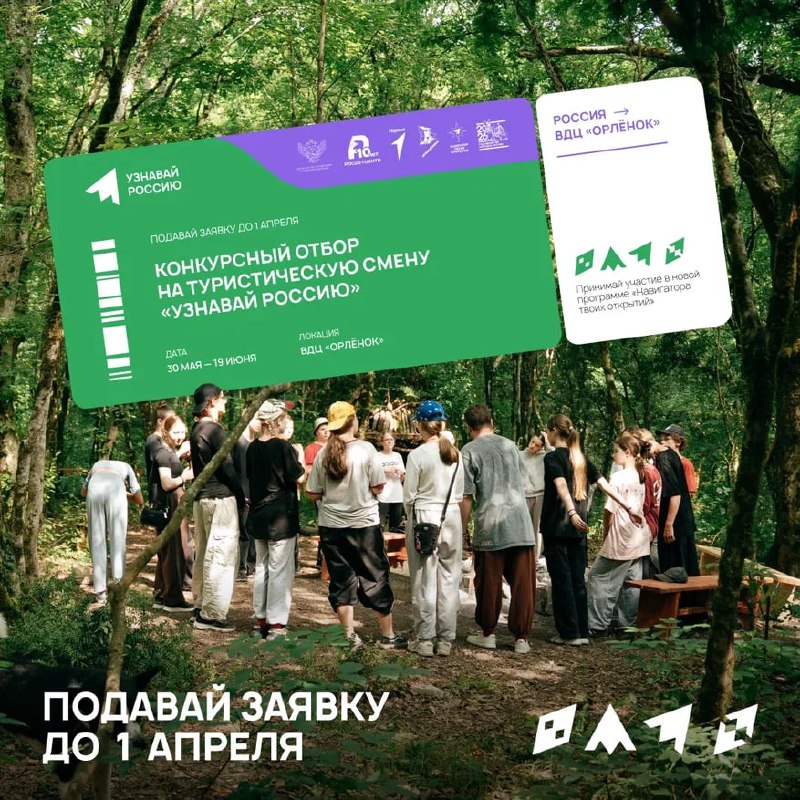 🤔 Росдетцентр запустил конкурсный отбор на смену для юных туристов Стартовал конкурсный отбор на участие в тематической дополнительной общеразвивающей программе «Узнавай Россию», которая пройдёт во