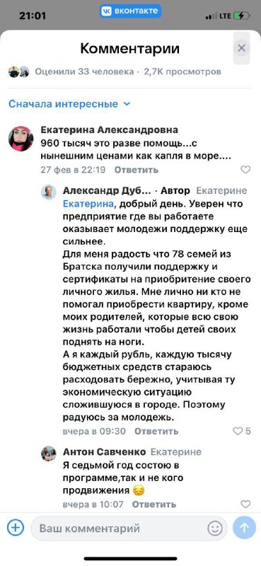 А всё-таки интересно, как Александр Сергеевич закончил школу: с двойкой по русскому языку?😩 В общении с жителями мэр Братска традиционно предельно откровенен и прямолинеен: на реплику о маленьком ра