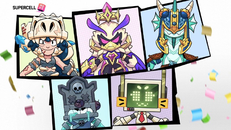 ⚡️ Скины выбраны! По итогам голосования за скины Supercell Make выиграли следующие скины: — Охотник на скелетов Алли; — Королева сумерек Лили; — Ёрмунганд Даг; — Призрачный Грифф; — Ретро Кит. Данн