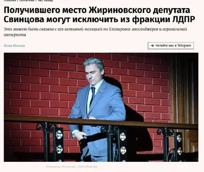Свинцова хотят исключить из ЛДПР из-за комментариев про блокировку Telegram, — Ведомости Утверждается, что чиновника в партии призывали не давать комментарии о блокировках, но Свинцов проигнорировал