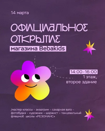 МЕРОПРИЯТИЯ B BROSKO 14 - 15 марта 🌸 Бросковчане, а вот и новости о классных мероприятиях, которые пройдут у нас в комплексе на этих выходных: ОФИЦИАЛЬНОЕ ОТКРЫТИЕ магазина детской одежды BEBAKIDS
