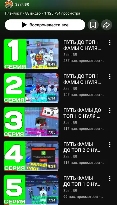 ❗️У блогера - SAINT BR(35k), первые видео про путь фамы на сервере SMOLENSK(😍), собрали аж от 100 тысяч просмотров. Удивительно, что там наш сервер. ❤️ - о, я кста смотрел путь этот 👻 - хезе, не см