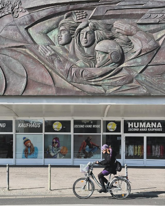 Барельеф "Человек преодолевает время и пространство" на фасаде "Дома путешествий" Берлин, Германия Архитекторы: Roland Korn, Johannes Brieske, Roland Steiger Год постройки: 1971 🏢Brutalism