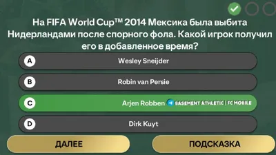 Правильные ответы на мексиканские вопросы в FC MOBILE в разделе нового мини события "История Наций"🇲🇽 1️⃣. На FIFA World Cup 2014 Мексика была выбита Нидерландами🇳🇱после спорного фола. Какой игро