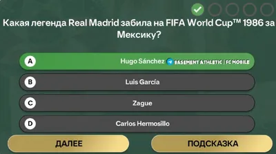Правильные ответы на мексиканские вопросы в FC MOBILE в разделе нового мини события "История Наций"🇲🇽 1️⃣. Какая легенда Реал Мадрид⚪️забила на FIFA World Cup 1986 за Мексику? Правильный ответ - A