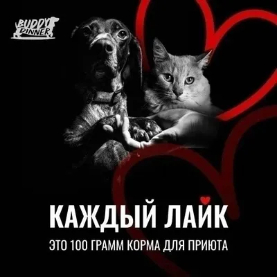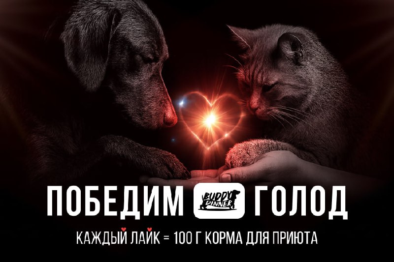 Благотворительная программа Buddy Dinner «Победим голод!» Суть проста: каждый ваш лайк под этим постом превращается в 100 грамм сухого корма для приютов. Чем больше лайков — тем больше еды для собак