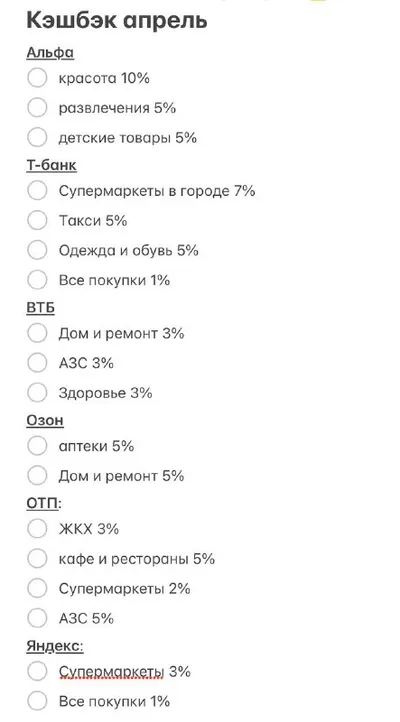Кэшбэк на апрель Я внимательно отношусь к кэшбэку, так как за счёт него пополняю финансовую подушку, а также инвестиционный счёт на "безбедную старость". Что же интересного предложили банки на след