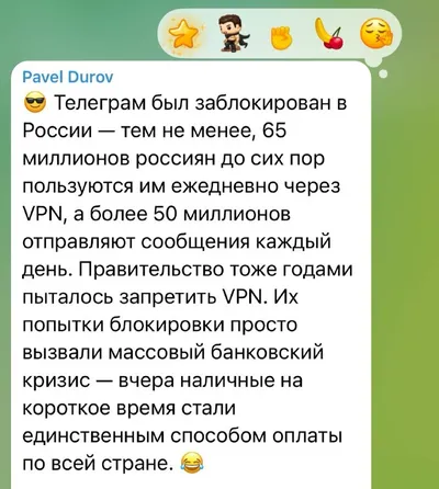 ⚡️ Дуров объявил ВОЙНУ С РКН — только что глава Telegram выпустил целое заявление про блокировку мессенджера в России. 🔅 65 миллионов россиян ЕЖЕДНЕВНО продолжают пользоваться Telegram через VPN. �