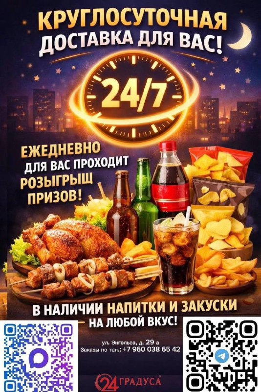 🎉 Внимание, друзья! 🎉 «24 градуса» предлагает вам круглосуточную доставку напитков и горячих закусок. «БЫСТРО, ВКУСНО, ВСЕГДА ВОВРЕМЯ К ВАШЕМУ СТОЛУ» Заказы по тел.: 89600386542 г. Бугульма, ул.