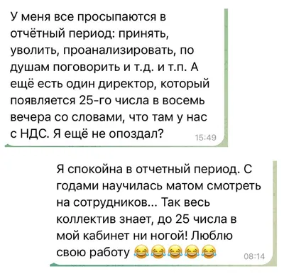 Коллеги, а как у вас в отчетный период: 🤡- все просыпаются и дергают постоянно ❤️- все спокойно, коллеги и директор не беспокоят лишний раз 🤔 Наш канал в мах
