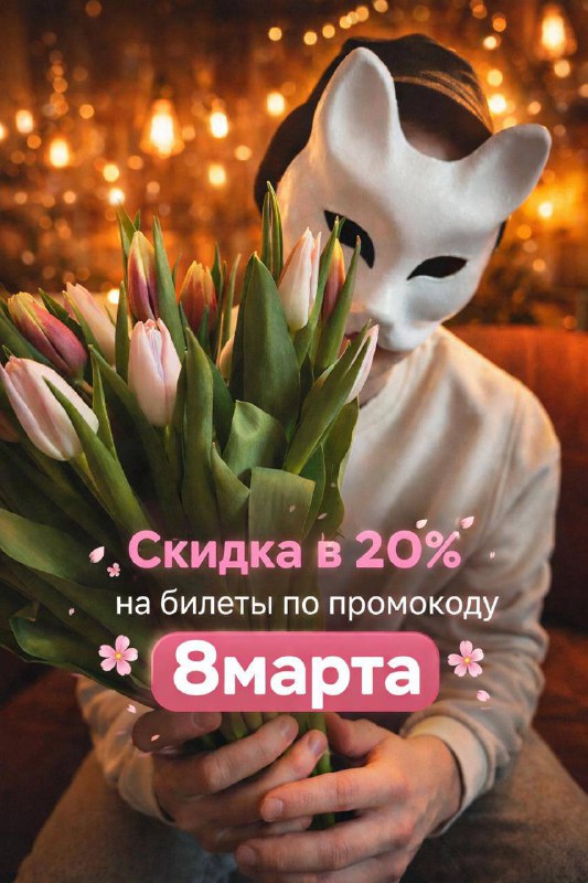 🌷промокод «8марта»дает скидку 20% на все билеты во всех городах Лучший подарок себе, подруге или второй половинке. 🎟️ БИЛЕТЫ И ГОРОДА 🎟️ БИЛЕТЫ И ГОРОДА 🎟️ БИЛЕТЫ И ГОРОДА