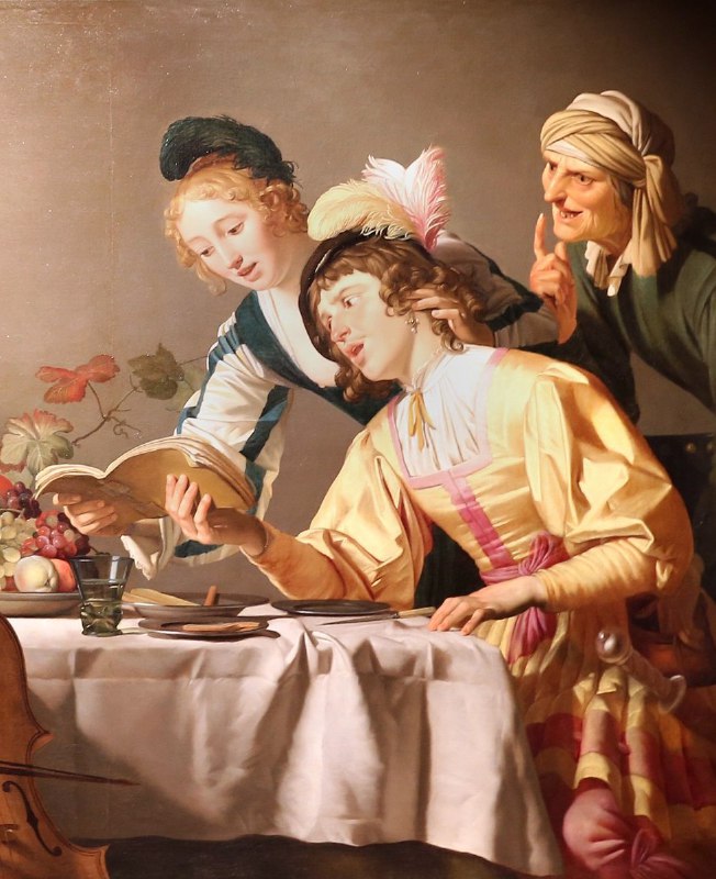 🔍 Ответ на вопрос воскресной викторины ✅ Правильный вариант — A Левой рукой девушка собирается незаметно вынуть из уха молодого красавца серьгу с тремя крупными жемчужинами. Юноша поёт, погружённый