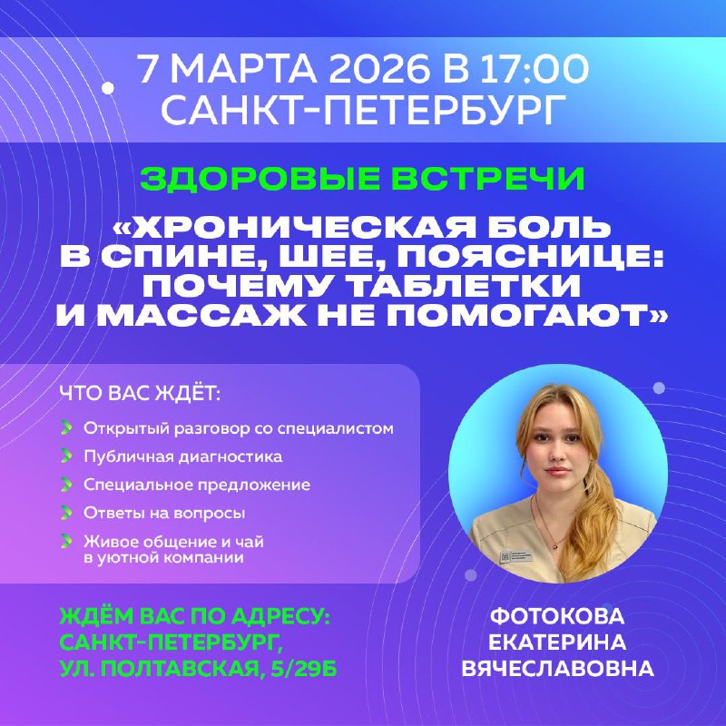 ⚡ ХВАТИТ ТЕРПЕТЬ, ПРИХОДИТЕ РАЗБИРАТЬСЯ! Друзья, пришло время поговорить о том, что мучает годами. 7 марта приглашаем вас на тёплую встречу в нашу клинику в Санкт-Петербурге. Разберём одну из самых