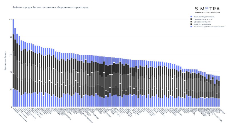 «Симетра» выпустила рейтинг из 100 городов России по качеству общественного транспорта. Топ-10 городов: Пермь, Екатеринбург, Новокузнецк, Нижний Новгород, Казань, Челябинск, Южно-Сахалинск, Череповец