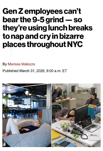 Зумеры уходят плакать в обеденный перерыв. Поколение Z всё хуже выдерживает классический график 9–5. Молодёжь прячется в парках, библиотеках и даже церквях, чтобы выдохнуть между задачами, а некоторы