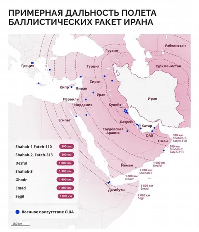 🇮🇷 #Иран Дальность ракет, которые имеются в арсенале Ирана и возможные цели. 😯 BUYAN 📱 Мы в Max