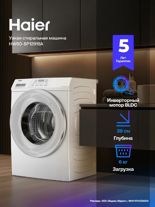 Стиральная машина автомат Haier HW60-BP12919A, инверторная, 6 кг, 10 программ, 1200 об/мин, освежение паром 💳Со скидкой: 25735 ₽ / Было: 51 999 ₽ ⭐ 4.8 (449) · 1.6K купили Ссылка на товар - https:/