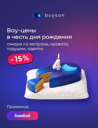 Лучший способ отметить день рождения? Сделать подарок вам🎁 buyson — 4 года! Мы задуваем свечи и говорим спасибо всем, кто выбирает нас для самого важного — сна 😴 Поэтому в честь дня рождения дари