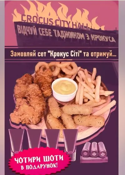 #в_миое_животных На Украине как всегда. К годовщине теракта в московском "Крокус Экспо" бары предлагают специальное меню... И каждый вечер там кто-то удивляется прилетам по коммунальной инфраструктуре