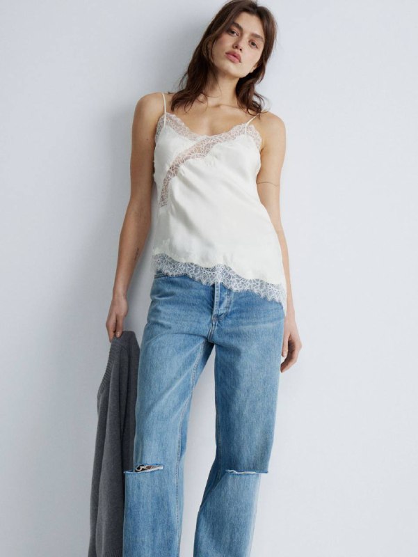 А ещё очень понравился топ в Lime атласный с кружевом… НО! Как его носить? Никакой лиф не подойдёт, будет видно из-за кружева прям на груди. Стики просвечивают из-за тонкой гладкой ткани. Без всего