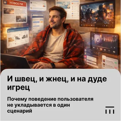 Люди используют контент для разных задач, и ни одна из них не может считаться основной. По данным ИОМ «Анкетолог», сопоставимые доли пользователей следят за новостями (64%), используют контент для отд