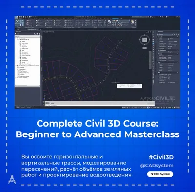 Complete Civil 3D Course: Beginner to Advanced Masterclass Курс учит работе в Autodesk Civil 3D для проектирования дорог, инфраструктуры и ландшафта — от создания поверхностей по точкам до построения