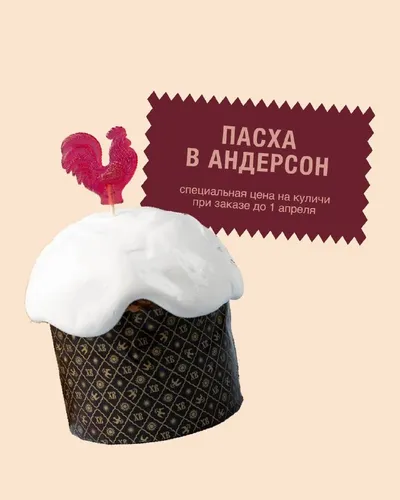 Праздник светлой Пасхи уже в Андерсон🐣 Мы подготовили лимитированное пасхальное меню — куличи, шоколадные яйца, десерты. И до 1 апреля вы можете оформить предзаказ на пасхальные куличи по специаль