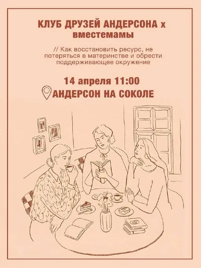 Завтрак Друзей Андерсон X ВМЕСТЕМАМЫ Мамы, приглашаем вас на особенную встречу — тёплый завтрак, где можно остановиться, вдохнуть, выдохнуть и почувствовать поддержку🤍 14 апреля в 11:00 в обновлённ