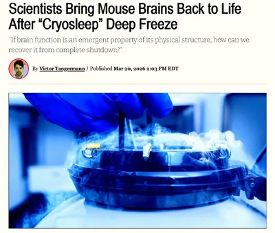 Учёные впервые вернули активность мозгу после глубокой заморозки. Команда из Университета Эрлангена заморозила ткани гиппокампа мыши — области мозга, отвечающей за память и обучение — до -196°C, прев