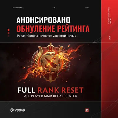 VALVE АНОНСИРОВАЛИ ОБНУЛЕНИЕ РЕЙТИНГА 🌟 🌟 Уже этой ночью (01:00 по МСК) в Dota 2 выйдет обнуление всего рейтинга ВПЕРВЫЕ С 2017 ГОДА. Известно, что это затронет все ранги без исключения 🌟 Что нас