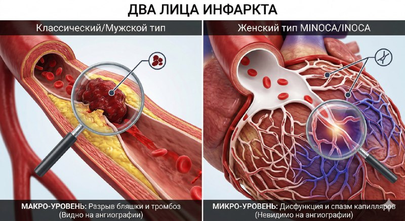 🕵️♀️ Куда исчез тромб? Истинное лицо женской ишемии. Коллеги, «голливудский» инфаркт, которому нас учили в институте (огромная атеросклеротическая бляшка лопается в крупном сосуде и наглухо перекры