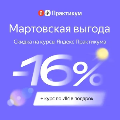 Почувствуйте весну с Яндекс Практикумом 🌱 Забирайте скидку 16% на все курсы Солнце светит ярче — и ваши перспективы тоже. Углубите экспертизу в своей сфере и добавьте в арсенал ИИ-навыки на курсах