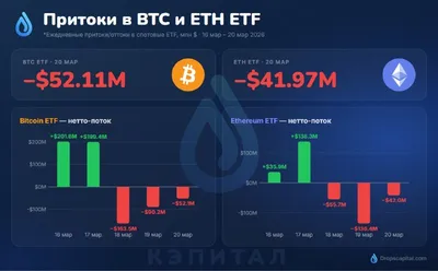 👻 ETF всё ещё в минусе, но оттоки замедляются 🔽 BTC ETF: -$52 110 000 🔽 ETH ETF: -$41 970 000 Негатив сохраняется, однако масштаб продаж падает. Финпотоки в американских спотовых ETF за вчерашни