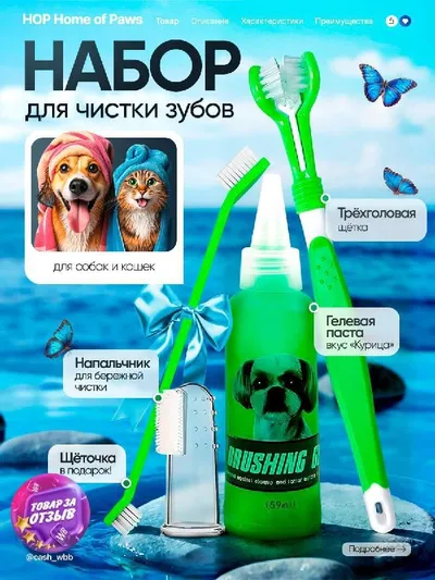 ⭐️Набор для чистки зубов для собак и кошек⭐️ 🔥 Кэшбэк 100% Цена на 🛒390р❌ 🔥 Цена для вас 0 руб ❗️ Обязательные условия перед выкупом 🛒 Перед заказом обязательно написать @FetisovaAnasta