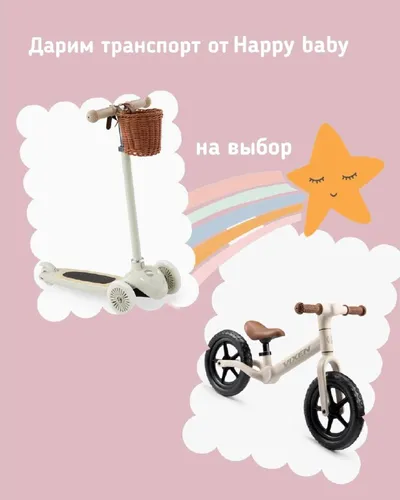 Дарим транспорт для вашего крохи! То, что точно пригодится этой весной и летом - беговел или самокат от бренда Happy Baby 🔥🪄 Победитель сам выберет, какой приз забрать, а условия участия проще не