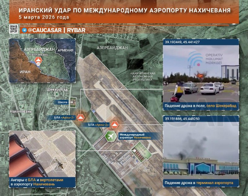 📝«Это вам за Садовод!»📝 удар по Нахичевани произошёл не просто так Некоторое время назад два иранских беспилотника «Араш-2» атаковали международный аэропорт Нахичевани в Азербайджане. По кадрам с м