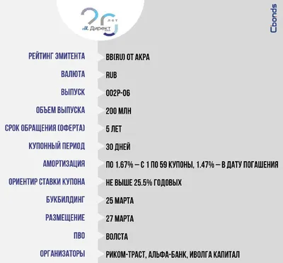 #Премаркетинг 💰 ДиректЛизинг, 002Р-06 (200 млн) Сбор заявок – 25 марта, размещение – 27 марта. 📝Облигационный долг Эмитента: 785 млн рублей.